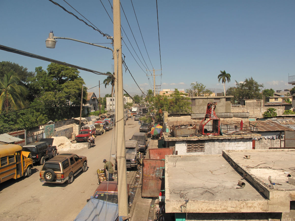 The Grand Rue is a road that goes through the center of Port-Au-Prince. On the official map of the city the name Grand Rue does not appear, rather inscribed in its place is Blvd. Jn. Jacques Dessalines, the name of the great leader of the slave rebellion and later self-proclaimed emperor of Haiti. But to all who reside on the island, this road, this major thoroughfare and the community of which it surrounds is referred to simply as the Grand Rue. Perhaps it is called Grand Rue because of its expansive length as it protrudes through the busy conurbation linking various neighborhoods with commerce. The true width of the street is disguised for the spillage of people and cars pushing their way through the bustling boulevard. The narrow sidewalks are claimed by street vendors selling everything from lumber and automobile fragments, to fresh fruits and freshly fried goat from cooks hovering over piping hot cauldron of oil. The “Grand Rue” is a city symphony, a composition of sounds from a complete day on this major thoroughfare that demonstrates that roads can “become liberated spaces that can be occupied,” as de Certeau puts it.>