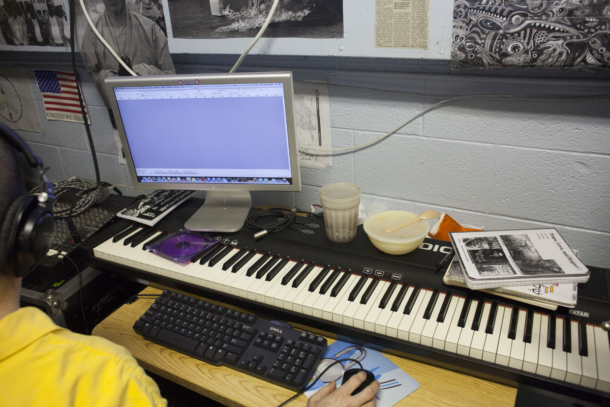 We must also question the “acceptable” forms of knowledge production, if we hope to truly cross the border from academia into community. While workshop participants, incarcerated and non-incarcerated alike, are fully capable of producing jargon-laden academic articles, they choose to produce art, words, and sounds. While journals are full of people studying incarcerated populations or instructive essays about prison writing programs, we feel the work in sanctuary approaches the intersection of sound studies, collaborative knowledge, and ethical social practice with a similar critical tone, and the projects we take on highlight that fact.